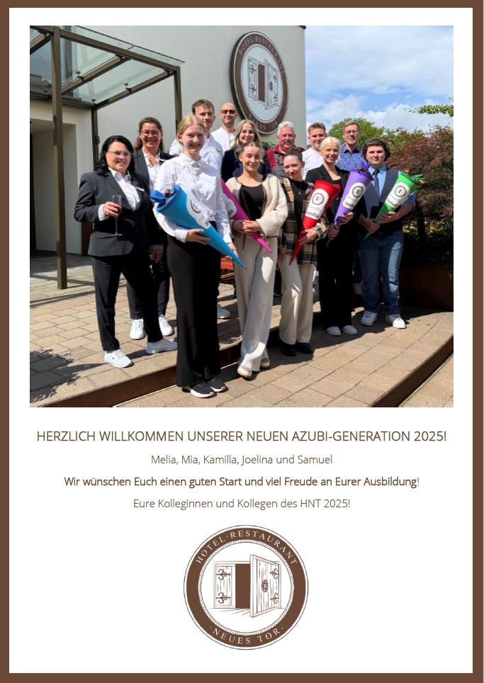 Ihr beginnt Eure Ausbildung heute am 01. August 2025 als Hotelfachmann/frau, Koch/Köchin oder Fachmann/frau für Restaurants und Veranstaltungsgastronomie!